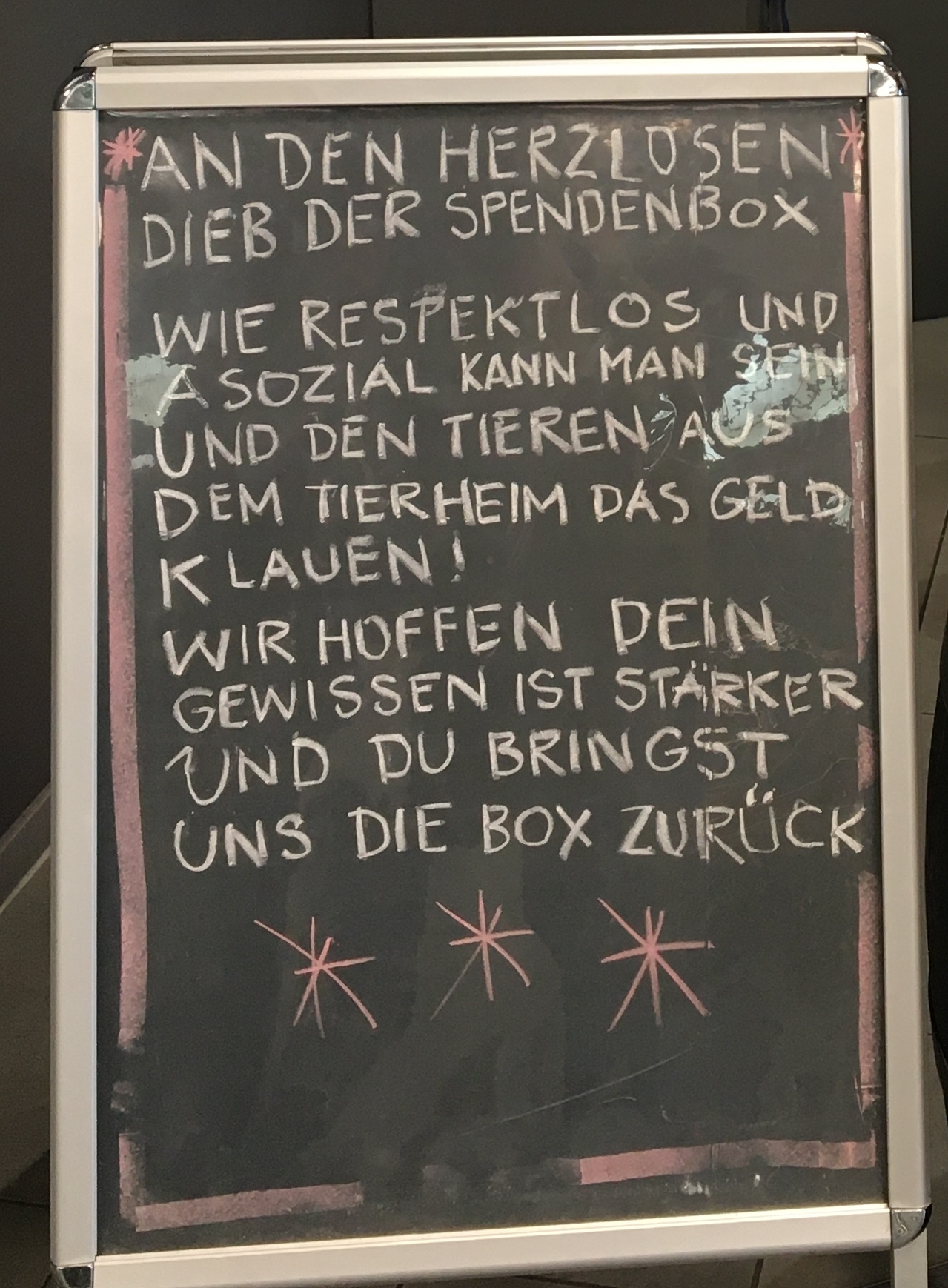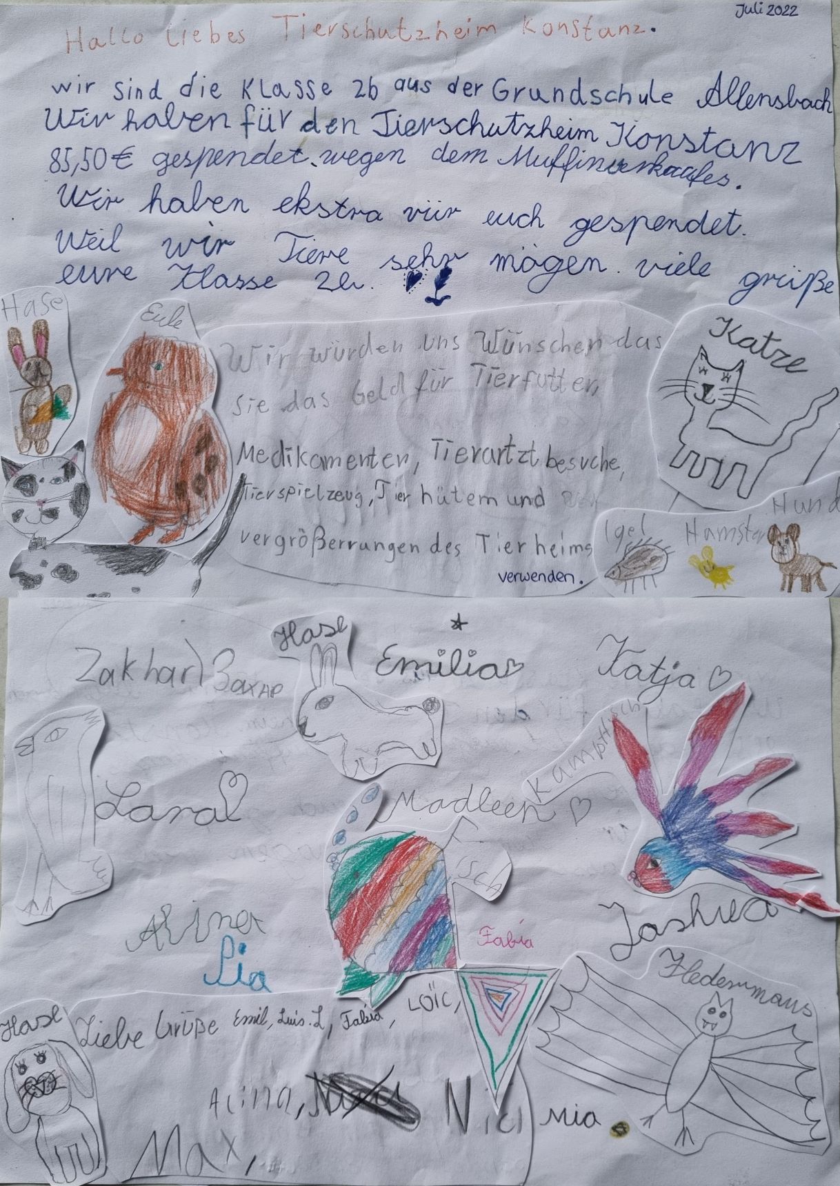 Basteln für die Tiere Gréta Materna hatte die Idee eine eigene Spendendose für das Tierschutzheim zu basteln. Und nachdem die Dose fertig gestellt war, wurde sie auch gleich ordentlich befüllt. Die Tierheimbewohner sagen ganz herzlichen Dank für 8,01 Euro und ein Glasherz. Und die Dose kann weiter verwendet werden.... |