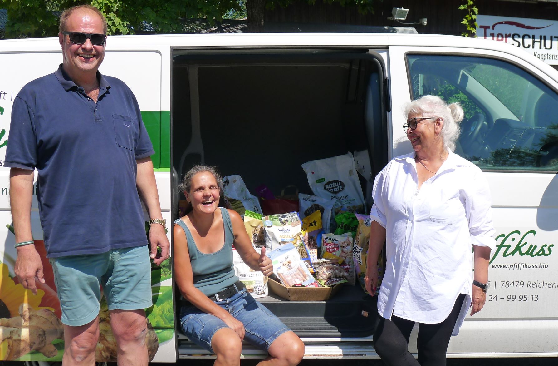 Spenden zum Sommerfest vom Pfiffikuss Eine sehr angenehme Überraschung fuhr heute Mittag auf den Tierschutzheimhof: Die Firma Pfiffikuss von der Reichenau hatte bei ihrem Sommerfest Geld- und Futterspenden für das Tierschutzheim gesammelt. 350 Euro und ca. 200 kg an Katzen- und Hundefutter kamen dabei zusammen. Die Seniorchefin und der Produktionsleiter übergaben die Mitbringsel an das Tierschutzheim. Ein herzlichen Dank von allen Zwei- und Vierbeinern des Tierschutzheims Konstanz an die großzügigen Spender und die Firma Pfiffikuss. |