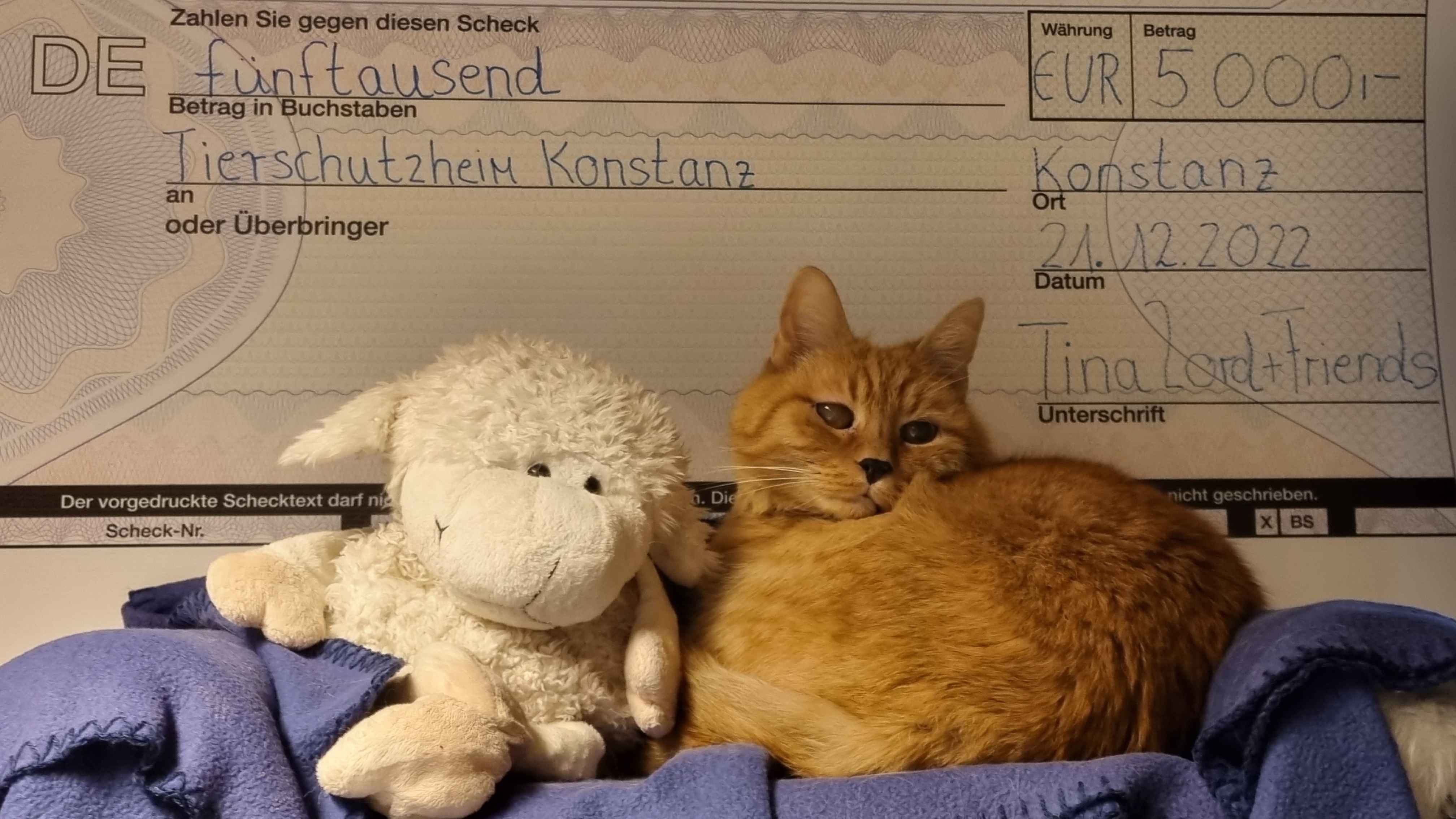 Parea Runde drei Vor kurzem fand in der Kantine in Konstanz die dritte Parea-Nacht statt. Sämtliche Reingewinne der Party und alle Spenden gingen diesmal an das Tierschutzheim Konstanz. Insgesamt kamen fantastische 2272,- Euro zusammen, über die sich Heidi Schätzle bei der Scheckübergabe mit allen Tierheim-Tieren freut. |